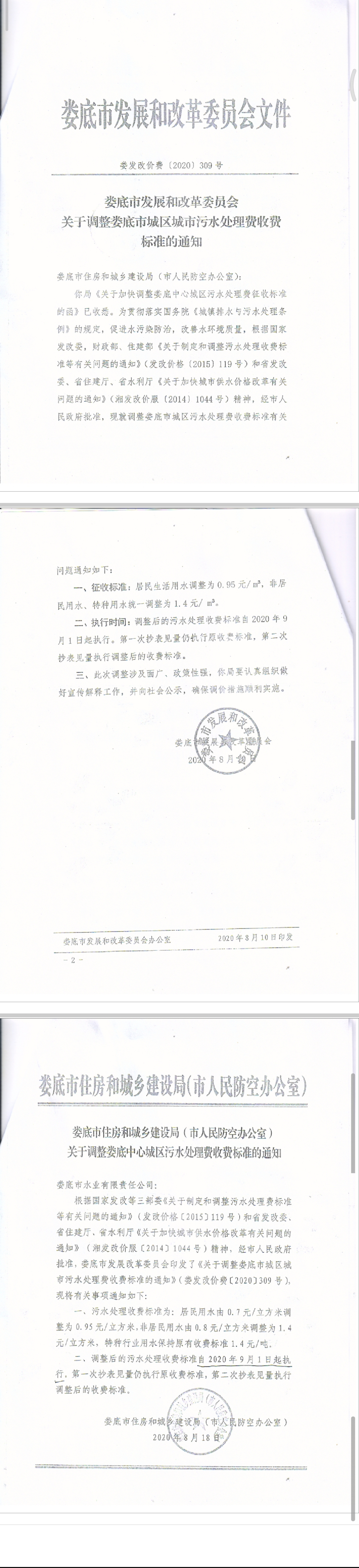 關(guān)于調(diào)整婁底市城區(qū)城市污水處理費(fèi)收費(fèi)標(biāo)準(zhǔn)的通知